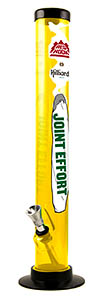 Available on draft as of July 15 in Washington State only, the beer is being released with a notable tap handle: it is shaped like a bright yellow bong, complete with column art, bowl and slide. Joint Effort is also scheduled for release in 22-oz. bottles this October, also only throughout Washington. Hemp-hopheads, time to schedule a trip to the Pacific Northwest.