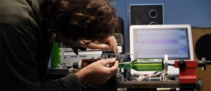 The new cylinder phonograph was made by New Zealand-based Gyro Constructivists. Check out the Edison Bottle in action, and a bit about the making of, in the video below: