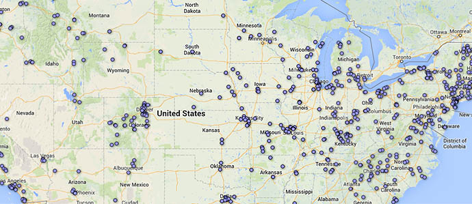 As he was doing research while organizing this fall’s Colorado Distillers Festival, designer Josh Mishell came across the Alcohol and Tobacco Bureau’s list of all licensed distilleries currently operating in the United States. Wanting an easier way to sort through the 1006 operations, he wrangled the data into something pretty useful: a Google map.
