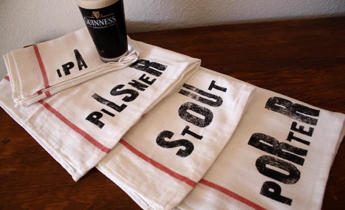 You can’t argue with the fact that beer drinking can sometimes get a little messy. Luckily, here’s a stylish solution for the messy brewski spillers among us: a set of 100 percent cotton towels that sport popular beer styles spelled out with hand-stamped, antique letterpress printing blocks. They are perfect for mopping up spilled suds.