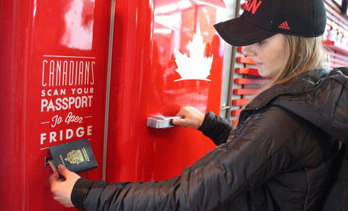 The company has outfitted the space with a large fridge stocked up with its beers that are available completely free of charge to Canadian athletes and citizens there to support them. The only hitch is, if they want a cold one, they have to furnish their passport to get it. The fridge is equipped with camera that scans the passports for authenticity. Provided everything checks out, it will dispense a beer.