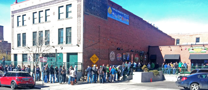A few Denver beer hot spots began tapping kegs of Younger this past weekend. Most hang-outs get enough for one pouring, but The Falling Rock Tap House routinely has three. Folks hoping for a taste began gathering at the Tap House’s front door before 9 AM. By 11 AM when the Tap House opened for business, the line stretched down the block to the corner of Blake Street and 19th. Russian River’s Pliny the Elder, Blind Pig IPA and Damnation golden ale were also on tap so beer geeks could easily craft a Russian River Beer Fest before the early afternoon Younger tapping. As pour-time approached, Tap