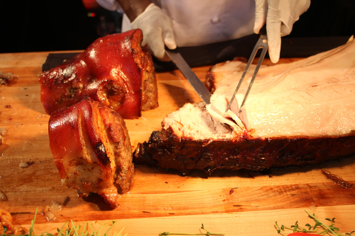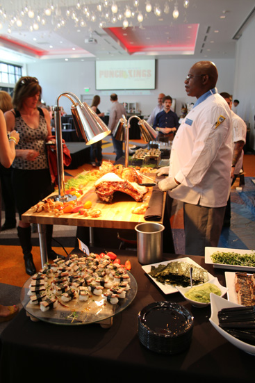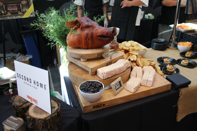 To keep the punch the focus of the event, guests were treated to a hallway of punch leading to the entrance. Four different punches, Strong, Acid, Sweet and Spice were set up in the hallway for guests to taste as they walked to the doors. Once inside the senses were assaulted with the sights, smells and tastes of pork at its finest. The four restaurants, The Curtis, The Corner Office, Kachina Southwestern Grill and Second Home Kitchen + Bar were each given an entire heritage breed pig to roast and prepare in as many delicious dishes as they could. Nose to tail porcine pleasures included roasted snout with jalapeno, BBQ pork sliders, pork tenderloin, pork jerky, pork pate, candied pork skin, fries fried up in pork fat and everyone’s favorite, bacon, bacon and more bacon.