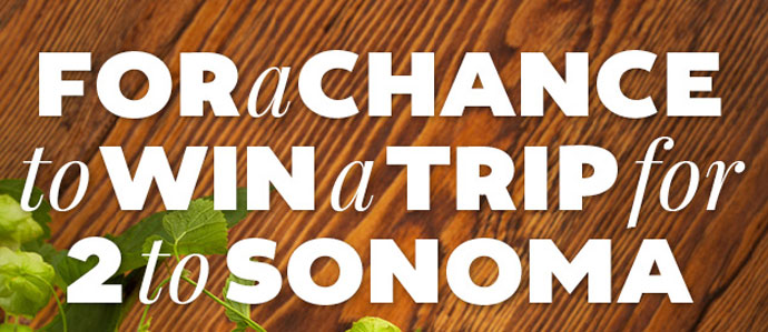 Last Chance To Win a Trip For 2 To Sonoma, California!