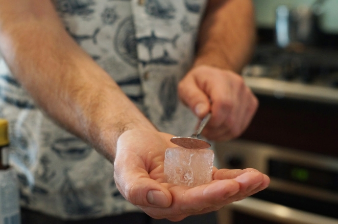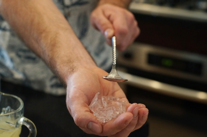 Tip: Optional method is to crack the ice in your hand with the bar spoon. This is tricky though and requires practice.