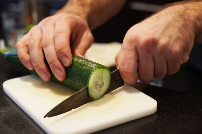 Garnish, placing the mint stem through the middle of the cucumber. Enjoy!