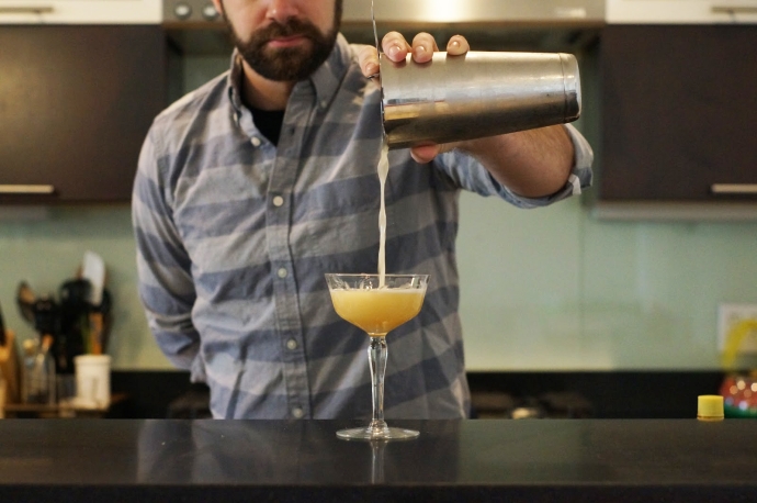 Tip: Since this drink is served up, meaning in a stemmed glass, you want to give it a really solid shake. Shaking for 5-7 seconds as hard as you possible can should do the trick.