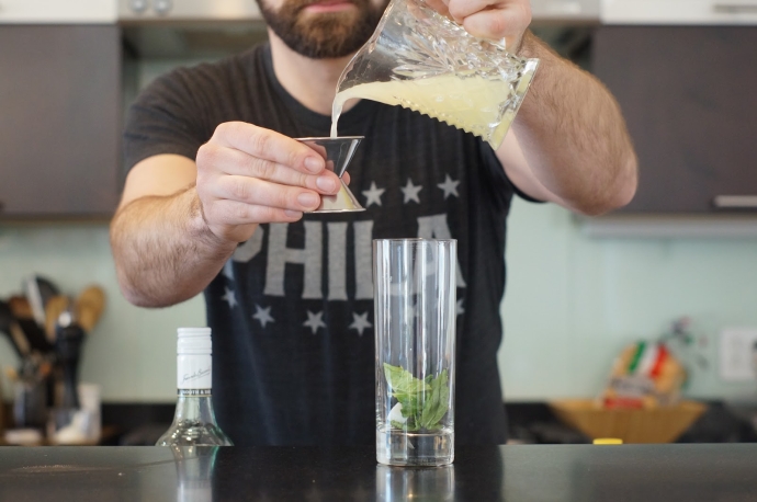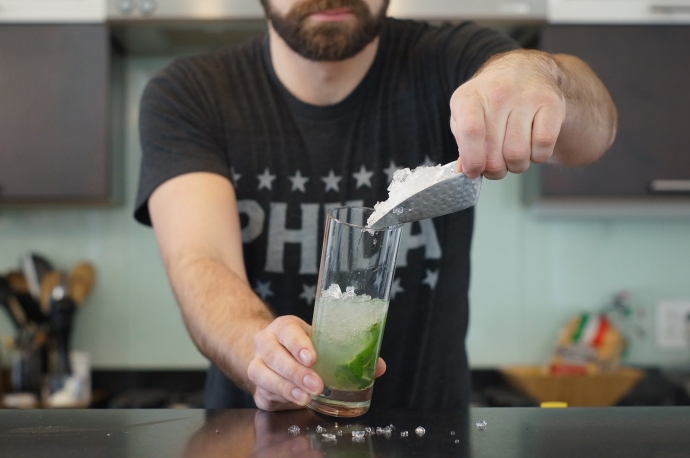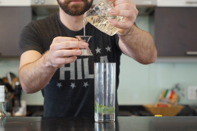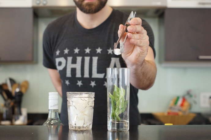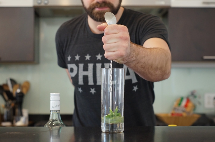 When muddling the mint, make sure you are just breaking up the sugar cube and bruising the mint. You don’t want to rip the leaves up into a big mess.