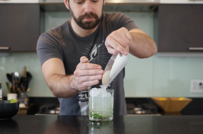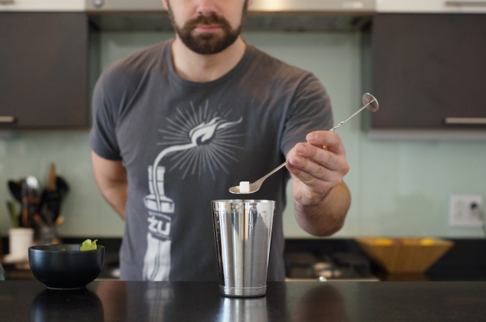 Tip: The granular consistency of the sugar cube will help release flavor from the mint leaves.