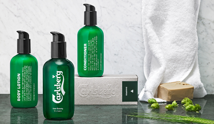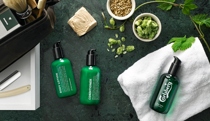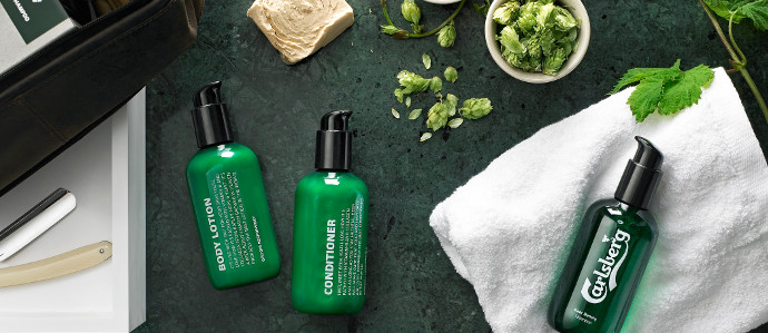 The Danish brewery has just released a line of grooming products, presumably just for men, which includes everything from shampoo and conditioner to body lotion. The main ingredients in the products (hops, yeast, and barley—surprise, surprise) are rich in both vitamin B and silicium, which are said to have excellent beautifying properties for skin and hair.