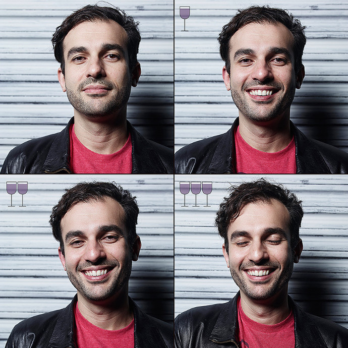 Marcos Alberti’s newest project started out as a bit of a joke amongst himself and his friends, but soon turned into an extensive photo series that documented what people look like after one, two, or three glasses of wine.