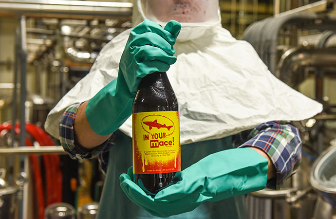 In a blog post, Caglione said, “IN YOUR MACE! is one of our most fun and personal partnerships to date and I’m super proud of this small-batch team-up with our friends at Mace Brand pepper spray. Any day we get to brew a beer wearing full body suits, face masks and respirators is a memorable day in the brewhouse.”