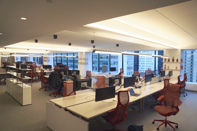 The office space, which includes departments from finance to marketing, is a completely open floor plan to make sure that every single Campari Group employee enjoys the incredible view of New York City.