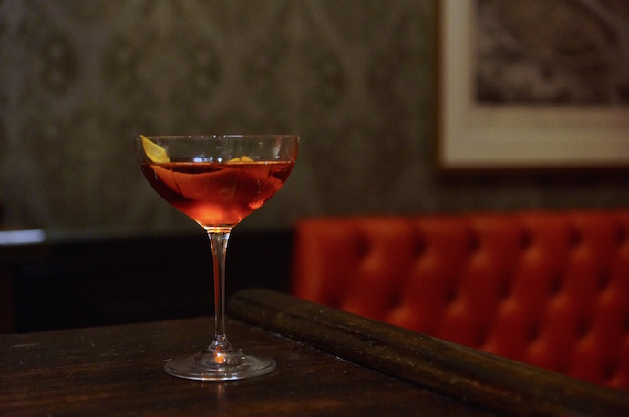 You might feel like you're traveling back in time when you find the hallway to Campari's secret Boulevardier Bar, a tiny space tucked behind the highly Instagrammable red stairs.