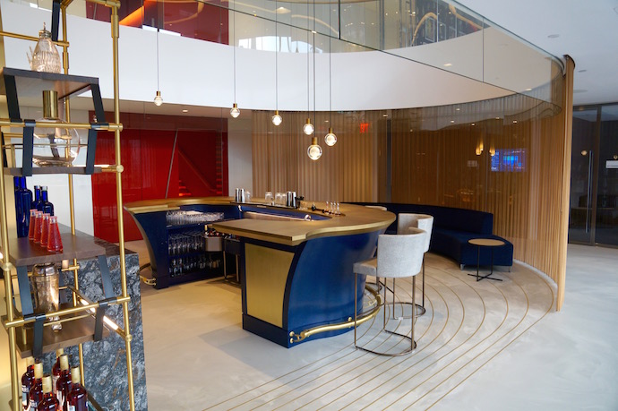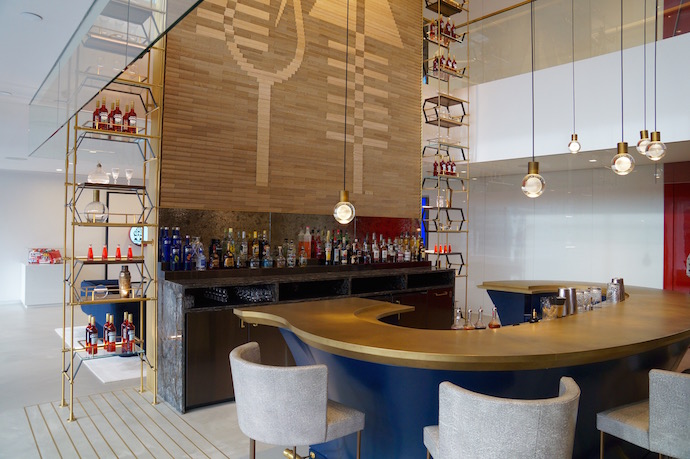 Designed by Gensler, a global design and architecture firm, the space incorporates Campari's signature accents, including its distinctive red color and classic C from its logo, as well as flourishes from other Campari Group brands like SKYY Vodka.