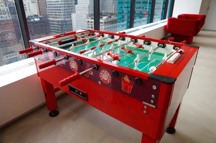 Of course, there's also plenty of recreation for both visitors and Campari's employees; right as you walk in, you can't miss the Campari-themed foosball table right in the middle of the space.