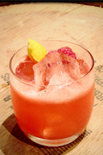 4. Garnish with lemon wheel and one thinly cut strawberry slice.