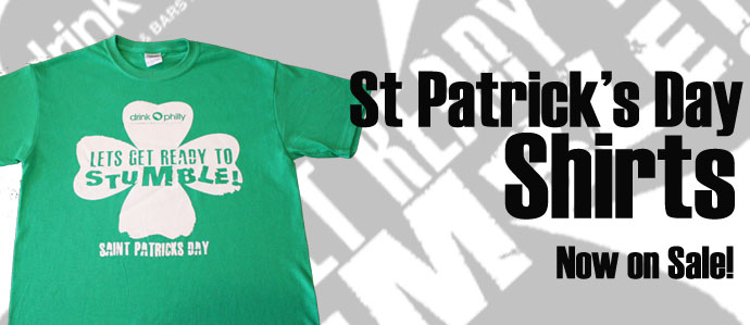 The Drink Philly St Patrick's Day shirts are now available.