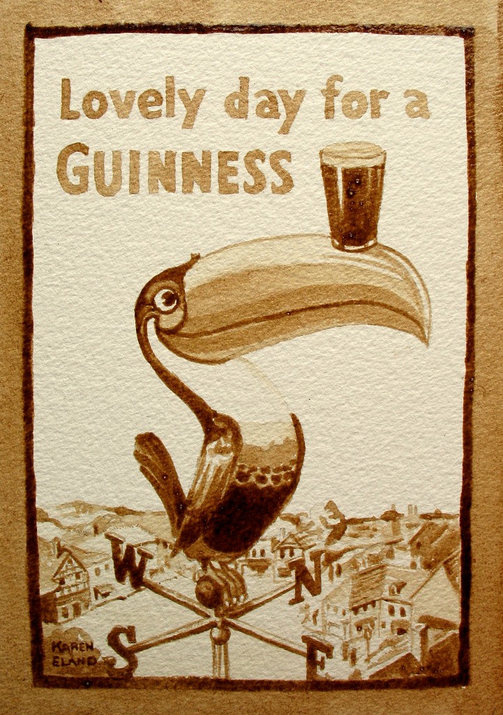 Oregon artist Karen Eland is not afraid to try new things. She made a name for herself when she moved away from traditional pencils and watercolors and began painting with coffee. It was only a short leap to beer – liquor and wine both proved more difficult to use – which she now uses to create portraits, signs and whimsical scenes.
