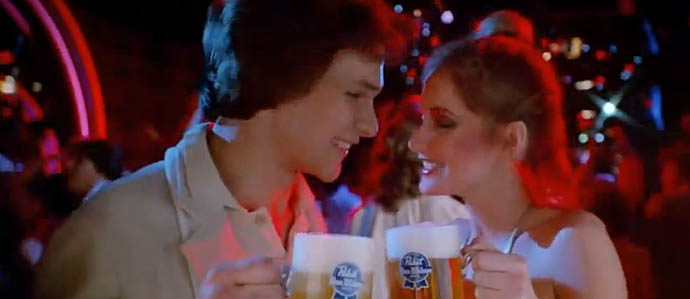 Perhaps you’ve seen this video, going ‘round the internets lately. If not, take a peek; it’s a true 70s classic. Not-yet-hearthrob Patrick Swayze spends a night on the town, with Pabst Blue Ribbon “on his mind.” His sparkly-gold clad date and he live the good life by spinning away on the disco floor and enjoying freshly poured mugs of PBR.