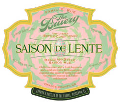 Spring is upon us! The time of dark, mysterious stouts, porters and winter ales has given way to lighter bodied, bright flavored spring brews. Orange County, CA’s The Bruery (a play on the last name of owner Patrick Rue) has been creating uniquely flavored, bottle conditioned ales for around five years. The 15-barrel brewhouse recently released their spring seasonal, Saison de Lente, a crisp farmhouse style ale, bottle-conditioned with Brettanomyces yeast. This complex, light bodied beer is available between the months of March and May.