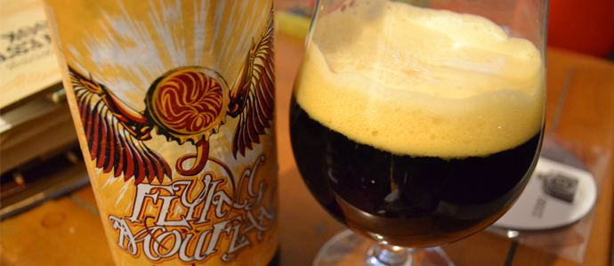 Poured from a 22oz bomber a rich, mahogany colored brew emerges creating a thin, tan head in the glass. Considering that the base of this beer is a super hoppy amber ale, the first thing that hits your nose is a citrusy burst of hops. Roasted coffee and malt notes follow the hoppy front in the nose. This beer gives quite a bit of foreshadowing in its scent and appearance, as the first sip is rich with sweet, candied dark fruit flavors and a subtle roastiness. All the candy flavors are balanced by a strong, hoppy backbone that leaves a pleasant sweetness lingering on the palate. Considering that this is a pretty strong brew with strong flavors, the hoppy bitterness really helps balance out and hides the potential booziness of the beer.