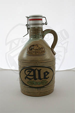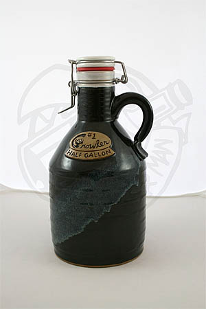 Romanick Growlers are high-fired stoneware pottery, hand thrown on a potter's wheel and signed by the artist. Each logo — a whimsical play on words with the G showing bared teeth, as if it were growling — is hand-carved and colored. The interior of each growler is coated with a white glaze. (All glazes used are lead free and contain no harmful materials.) This type of growler offers the maximum protection for your brew, as no light can get it to break down (or “skunk”) the beer in storage. Since each item is hand-made, growlers may be slightly different than pictured.