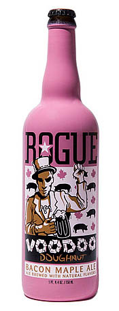 Celebrated Oregon outfit Rogue Ales is the latest brand to concoct a product exploiting Americans’ bordering-on-grotesque fascination with strips of smoked pork belly. Devised in conjunction with Portland’s Voodoo Doughnuts, the porter recreates the experience of scoring Voodoo’s much sought-after Maple Bacon Bar, and includes applewood-smoked bacon and maple syrup in its long list of ingredients. VooDoo Doughnut Bacon Maple Ale is available in a limited run at Portland-area pubs, and by mail order, in jazzy pink-painted 750ml. bottles for $13 a throw.