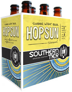 Southern Tier Brewing Co. owners Sarah and Phin DeMink have been brewing out of Lakewood, NY since 2002. Two years after their launch, they introduced Hop Sun, a spring and summer American wheat beer that’s brewed to be a thirst quencher on a hot day.