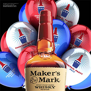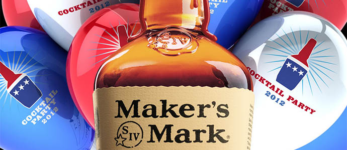 When you visit Maker’s Mark on the web, you can find instructions for how to change your Facebook party affiliation to the Cocktail Party, how to add the Cocktail party badge to your Twitter profile pic, and other ways to make your political symbol a red, white and blue liquor bottle, instead of a blue donkey or red elephant.