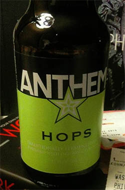 Anthem Hops is a truly unique beverage and a very interesting twist on the standard cider. Anthem offers a variety of cider flavors alongside this most intriguing one, such as pear and cherry, all crafted from whole apples and fresh fruit juices. Hops is a great find for those who suffer from gluten intolerance and miss the taste of a well hopped brew.