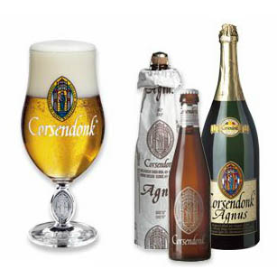 Corsendonk Agnus Tripel is one of the flagship labels. Brewed with pale malts and top-fermented it is sold in both large format corked-and-caged and capped 12-oz. bottles. There is some bottle conditioning, and when the beer is poured a very active, slightly rosy head forms immediately. The scent of the beer is almost entirely floral, but not at all sweet.