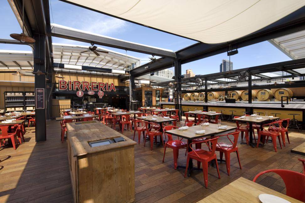 A rooftop restaurant in Manhattan that has an impressive beer and wine selection.
